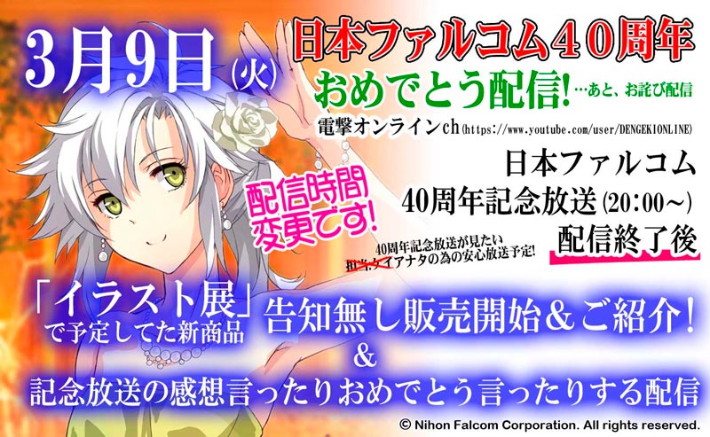 2021年3月9日で日本ファルコムは40周年を迎えます。YouTubeの電撃chにて記念番組を生配信!